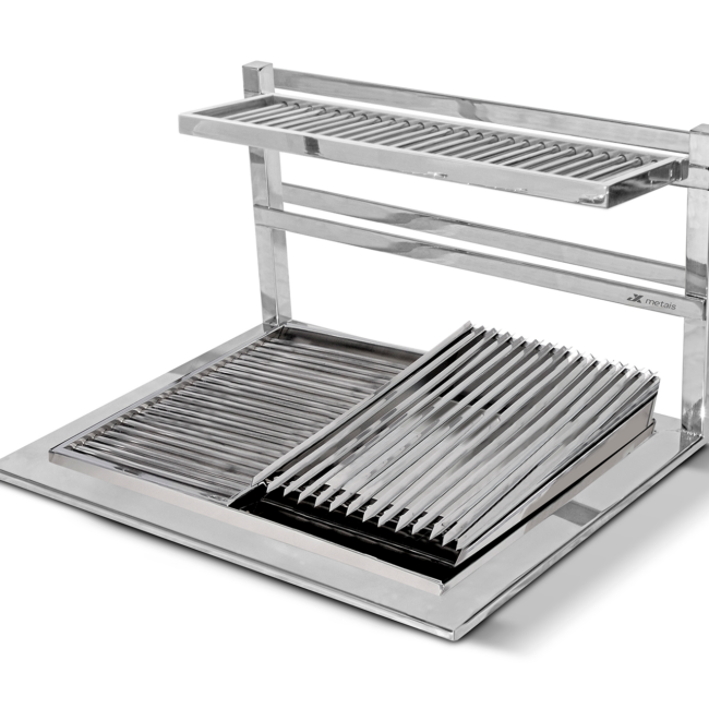 Produzido em aço inox 304 e disponível em tamanhos personalizáveis, o Suporte Slim JX Metais não apenas enriquece a estética de sua área gourmet, mas também se torna uma ferramenta essencial para criar momentos memoráveis com familiares e amigos.
