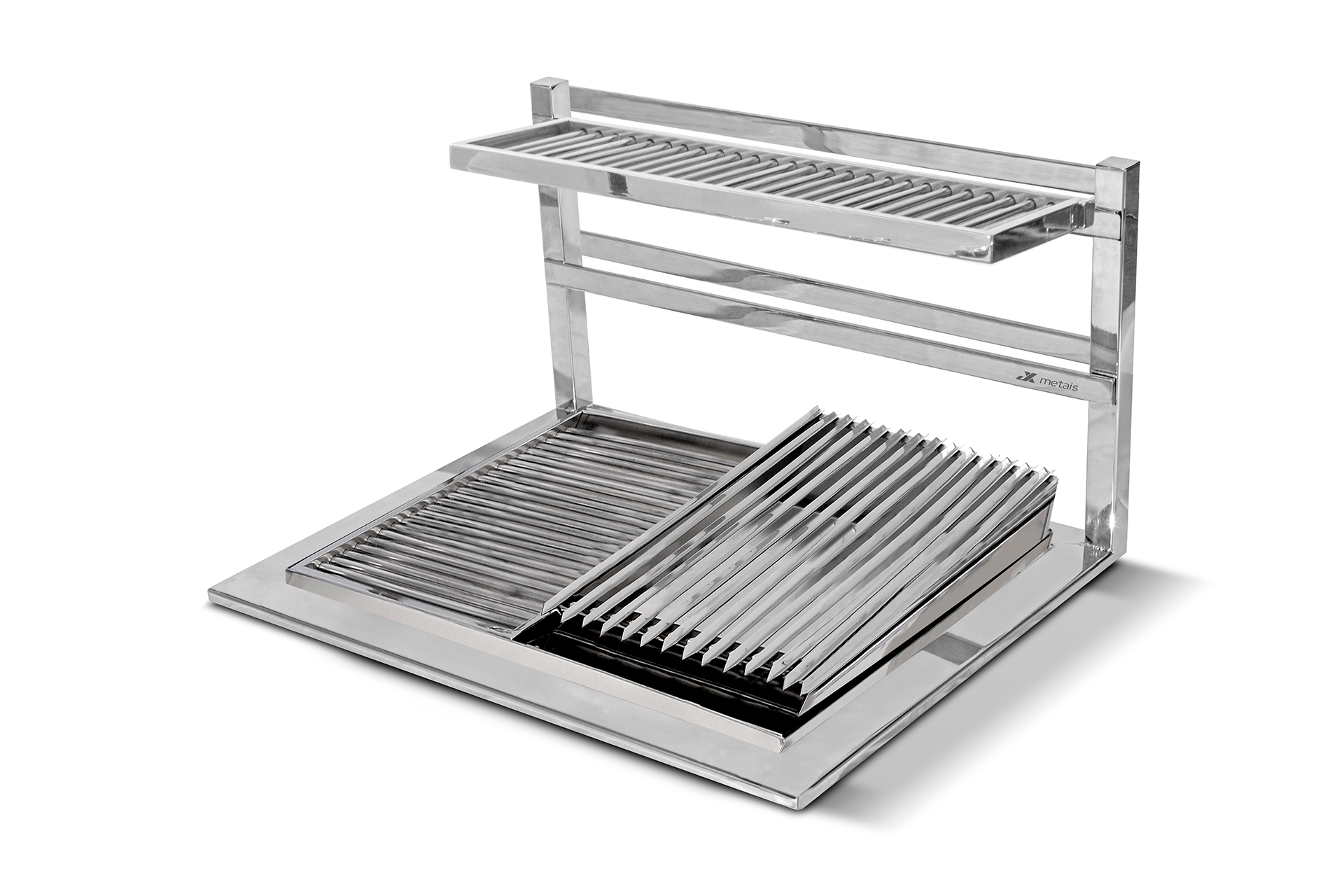 O Suporte Slim JX Metais é um produto de alta qualidade com acabamento refinado, ideal para melhorar sua experiência ao usar grelhas e espetos em sua churrasqueira.